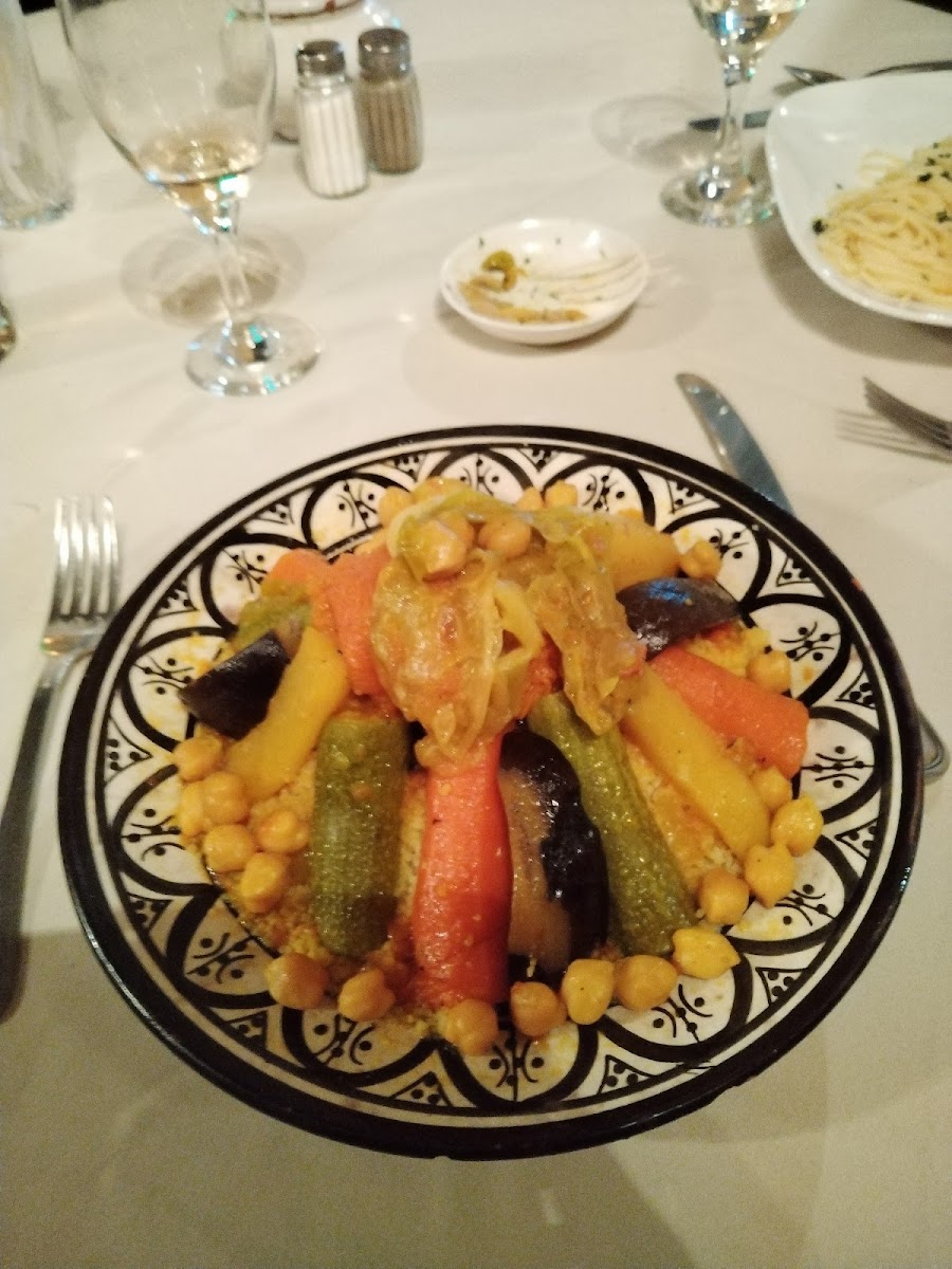One of the restaurant's standout dishes is the Couscous with Seven Vegetables Mutton. A true Moroccan classic, this dish is rich in flavors, featuring tender mutton paired with an assortment of seven perfectly cooked vegetables, all served over fluffy couscous. It's the kind of meal that makes you feel like you're sitting in the heart of Morocco, surrounded by the scents and tastes of the region. It's a must-try for anyone who wants to experience authentic Moroccan food at its finest.